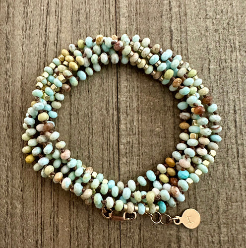 Knotted Amazonite Wrap Bracelet with 14k Gold Filled Accents