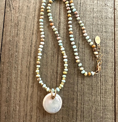 Knotted Amazonite Necklace with Gold Accents and a 14k Gold Filled Puffed Heart