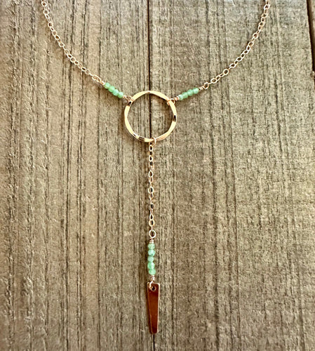Knotted Tourmaline Stone Necklace with a Large Gold Hoop