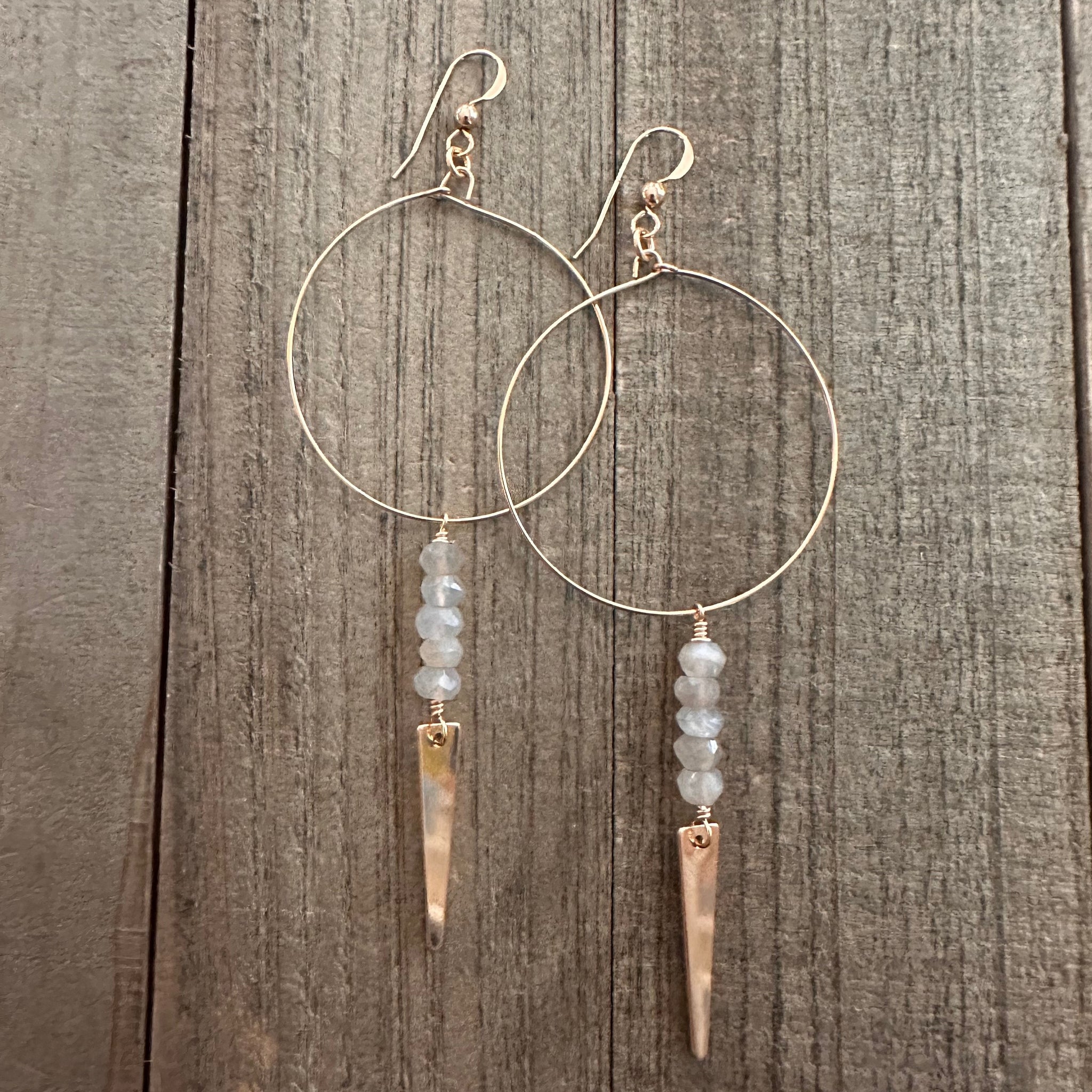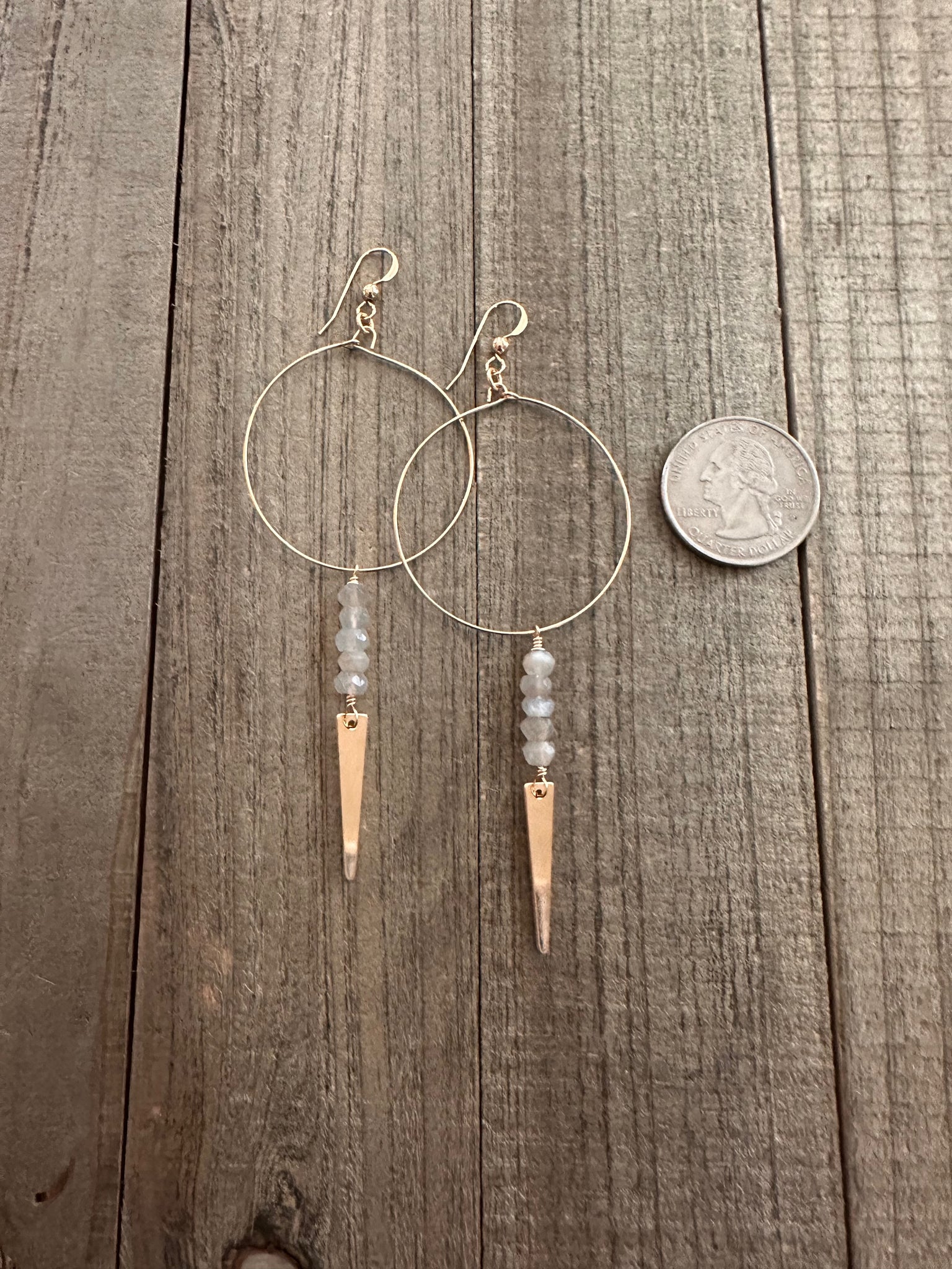 14K gold filled hoops, ear wires, and spike charm. Genuine moonstone.